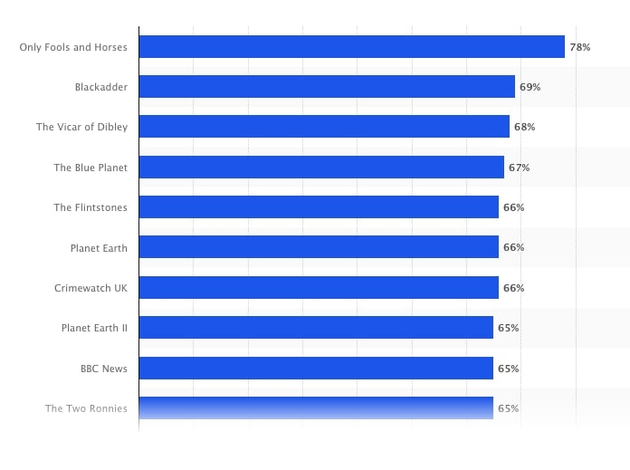 Study the following chart with statistical data on the most popular television shows in the UK and summarize it in a five-minute presentation.