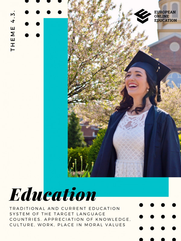 Traditional and current education system of the target language countries. Appreciation of knowledge, culture, work, place in moral values