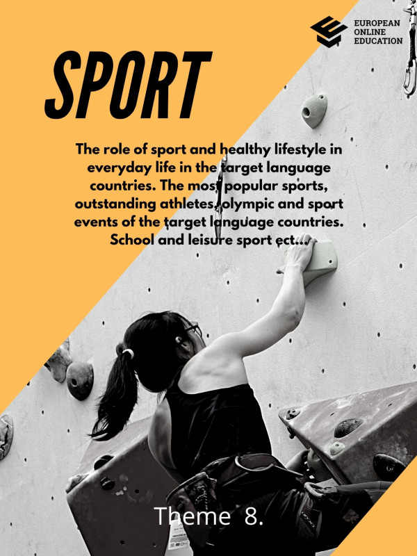 The role of sport and healthy lifestyle in everyday life in the target language countries. The most popular sports, outstanding athletes, olympic and sport events of the target language countries. School and leisure sport ect...