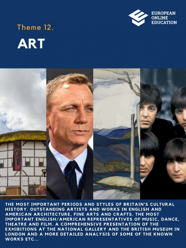 The most important periods and styles of Britain's cultural history. Outstanding artists and works in English and American architecture, fine arts and crafts. The most important English / American representatives of music, dance, theatre and film.